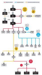 Especificando que estará em causa uma espécie de rede familiar e empresarial com alegados testas de ferro controlados pelo ministro angolano, a denúncia salienta que as sociedades com intervenção nos negócios com Angola e com empresas chinesas, portuguesas e brasileiras – que por sua vez terão negócios com o Estado angolano – “não possuem quadro de trabalhadores, nem exercem qualquer atividade profissional que justifique a celebração daqueles contratos de prestação de serviços em empreitadas de obras públicas e por montantes substancialmente inflacionados.” Finalmente, a denúncia conclui que o alegado esquema terá a participação de “sociedades que se limitam a gerir fluxos financeiros provenientes de atos ilícitos, autênticas lavandarias de dinheiro que tem como destino final Portugal”.